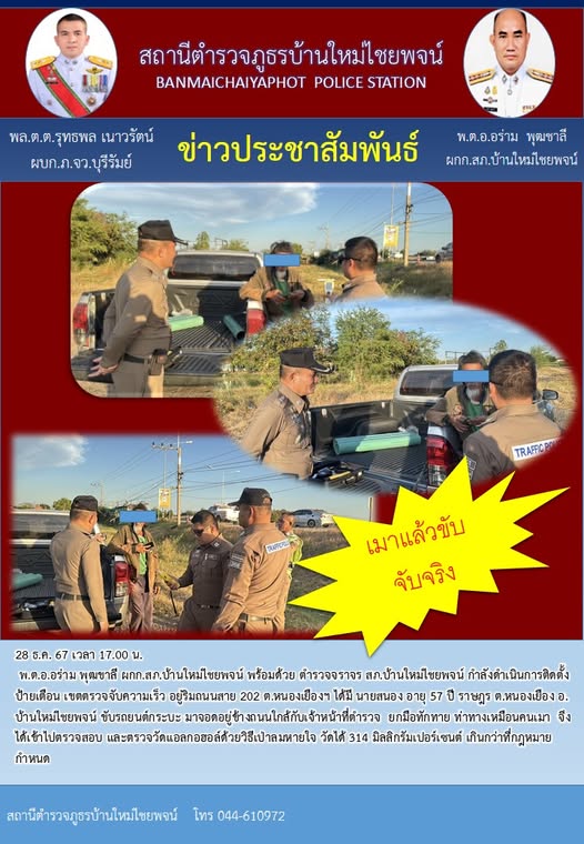 28 ธ.ค. 67 เวลา 17.00 น. พ.ต.อ.อร่าม พุฒขาลี ผกก.สภ.บ้านใหม่ไชยพจน์ พร้อมด้วย ตำรวจจราจร สภ.บ้านใหม่