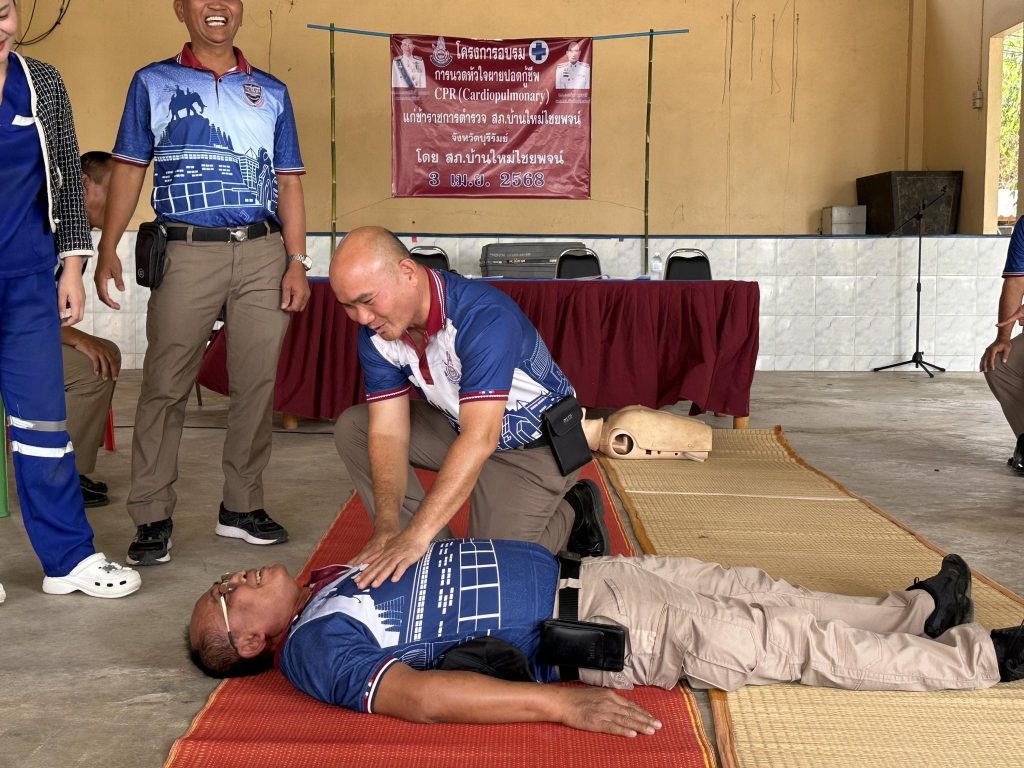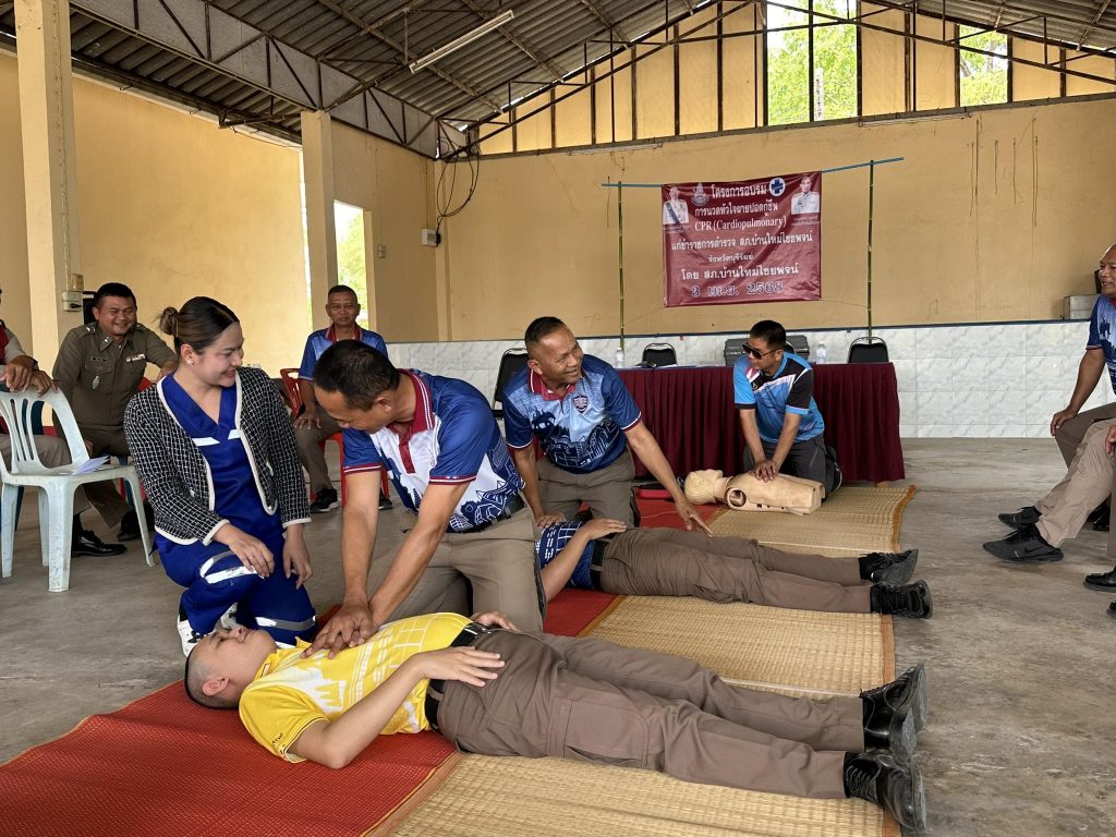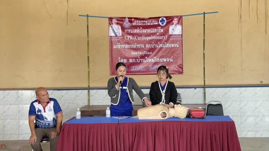 พ.ต.อ.อร่าม พุฒชาลี ผกก.สภ.บ้านใหม่ไชยพจน์ พร้อมด้วย ข้าราชการตำรวจ สภ.บ้านใหม่ไชยพจน์ ได้เชิญวิทยากรจาก รพ.บ้านใหม่ไชยพจน์ ให้ความรู้ในโครงการอบรม การนวดหัวใจ ผายปอดกู้ชีพ CPR เพื่อให้ตำรวจมีความรู้ เป็นการปฐมพยาบาลเบื้องต้น เพื่อรักษาชีวิตผู้ป่วย ก่อนนำส่งโรงพยาบาล ณ หอประชุมสันติราษฎร์รวมใจรักศรัทธา สภ.บ้านใหม่ไชยพจน์